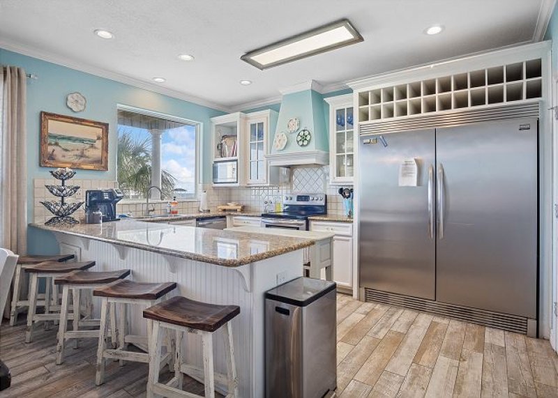 Welcome to Grandview East 301. The condo is the perfect choice for your next trip to the Emerald Coast with 1900 square feet of luxurious living space and 10 ft ceilings! This 3 bedroom, 3 bath unit is located on the 3rd floor directly on the beach, boasting spectacular views of the Gulf of Mexico from the huge balcony. Catch the incredible sunrise over the water while enjoying a cup of coffee or sunset with your favorite beverage at night. Relax after a full day in the sun with a movie on the flat-screen tv and plenty of space for your group to spread out. The Master bedroom and guest bedroom both have King beds. The third bedroom has two twin beds and there is a queen sleeper sofa in the living room, so this beautiful condo can accommodate 8 guests! The kitchen has everything the chef in your group needs to whip up a delicious meal. Come see why Grandview East 301 is a Panama City Beach family favorite!