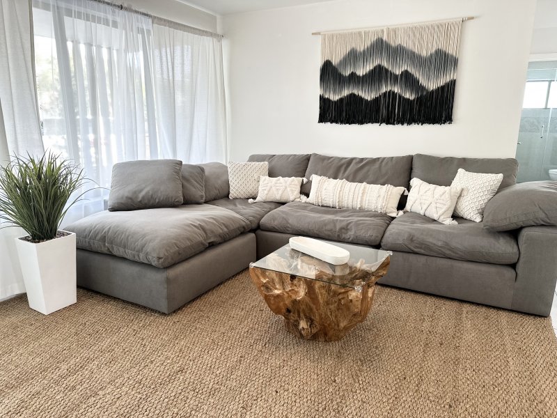 This spotless and coastal unit can sleep up to 5 guests comfortably. The renovated master bedroom with its 2 comfortable queen size pillow top mattresses can sleep 4, has a 58 inch TV. Its 1.5 bath stunning bathroom has a large walk in shower with seat with rain shower head and hand held and has a direct access to the main bathroom and bedroom. The cute bunk area is furnished with 2 new comfortable twins beds & each bunk beds have their own individual bookshelves, lights and USB ports.