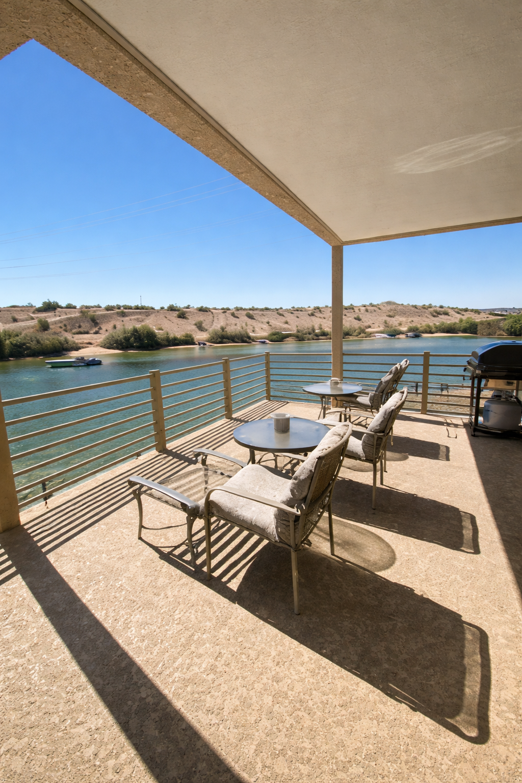 This stunning riverfront home offers 55 feet of frontage on the Colorado River, just minutes from Laughlin, Nevada. Enjoy breathtaking views from two large decks, as well as from the living room, dining room, and kitchen, creating the perfect setting for relaxing or entertaining along the water.