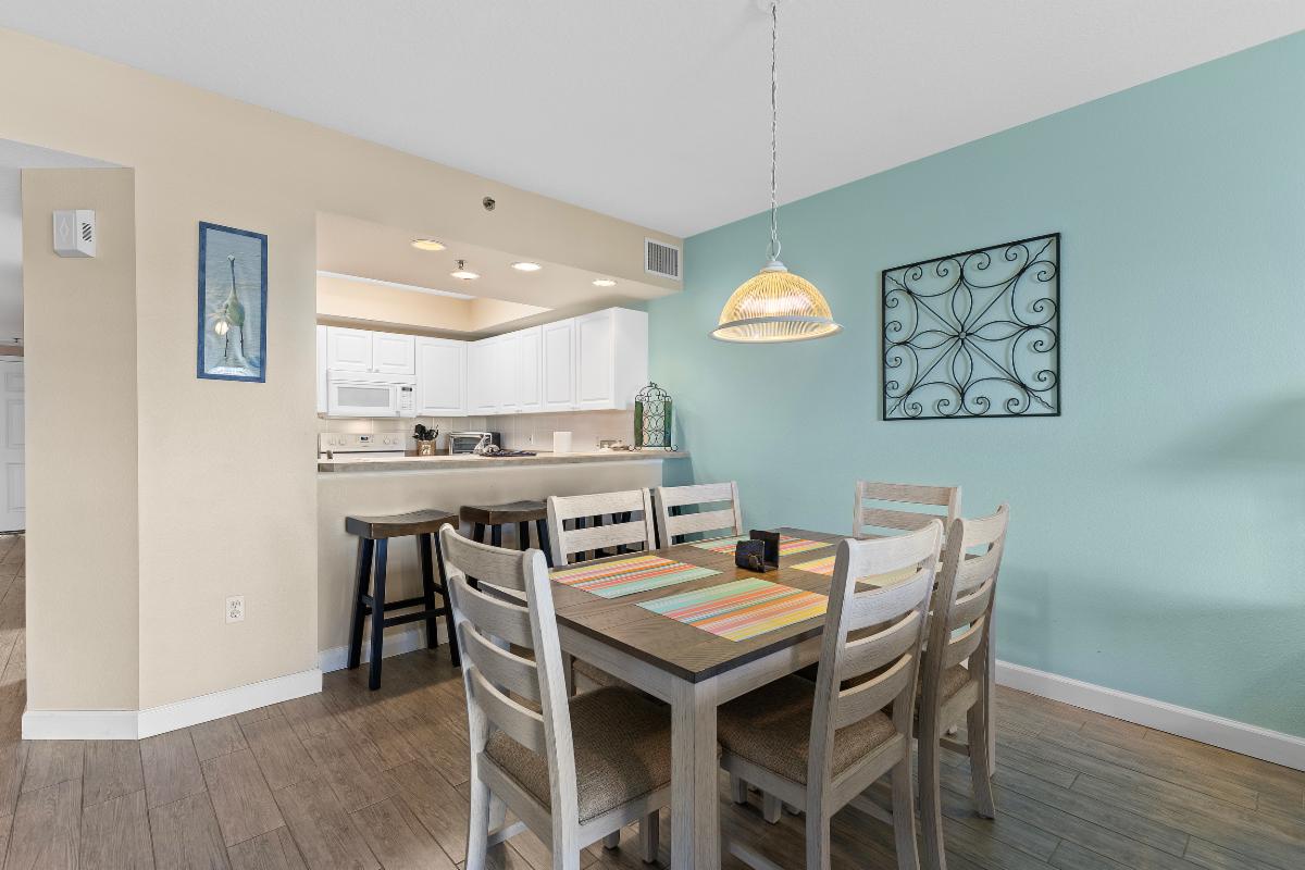 Grand Caribbean East #307 is a 1 bed/1 bath condo located in beautiful Destin. This unit comfortably sleeps 6 with its Queen, Twin/Twin bunk, and pull-out sofa bed setup. Enjoy beautiful views from the private balcony, or embrace the variety of amenities available, including the pristine pool and spa, a picnic area, and easy access to the beautiful beach and local attractions.