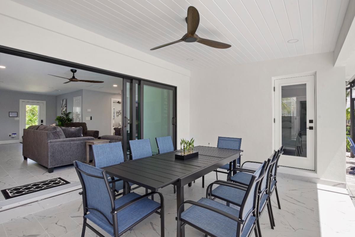 Come experience Ibis Landing on the South End of Fort Myers Beach. This beautiful home features a private pool, 3 bedrooms, an open floor plan, and gorgeous canal views. A modern kitchen with stainless steel appliances and plenty of prep space provides the ease of whipping up a delicious meal. A unique dining table is attached to the kitchen peninsula, seats six guests, and has a waterfall edge. Unwind in the living room which features views of the pool area and a flat screen TV with YouTube. The primary bedroom has a king bed, and an attached bath with a walk-in shower. Guest bedrooms feature a queen bedroom and a bedroom with two twin beds, sleeping up to six guests comfortably. Outdoors, guests will find a spacious, enclosed lanai, leading out to the sparkling private pool. Bring your kayak or paddleboard and launch off the dock to explore the local scenery and wildlife.
