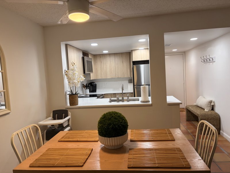 Kids friendly second floor unit is a 2 bedroom, 2 full bath condo about 900 square feet. It comes complete with a fully stocked kitchen with everything needed to cook, the kitchen is stocked with pots and pans, dishes, silverware, glasses, utensils, kitchen towels, and more., laundry with washer/dryer as well. Kids friendly unit offers use of portable crib, high chair, kids toilet seat, kids table, books and games!