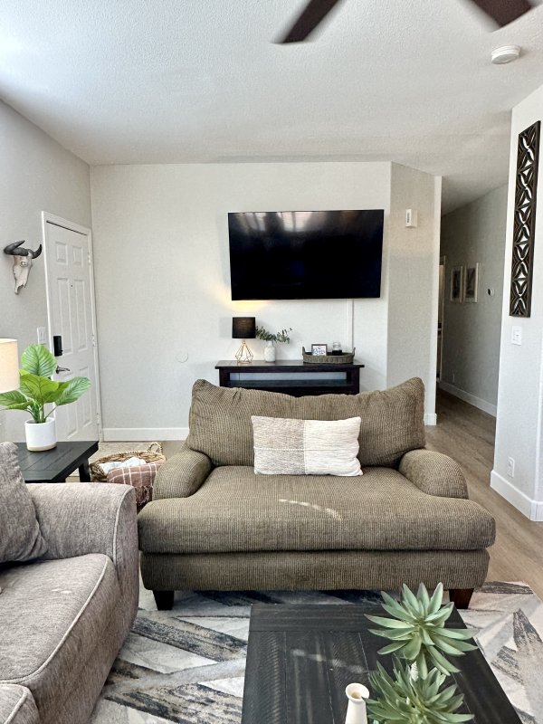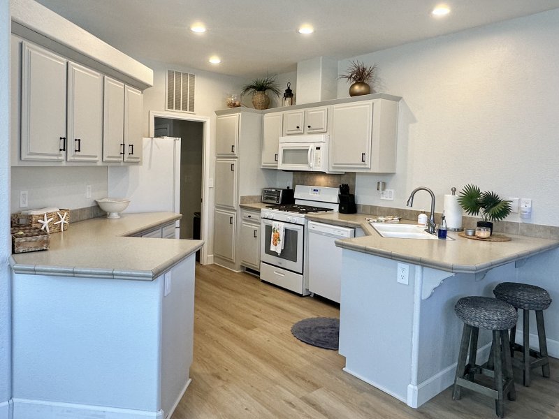 Our home is light and bright! We offer a full kitchen, indoor laundry room, large soaking tub in the master bath, fully furnished and stocked cooking kitchen. Enjoy a quiet morning coffee on our private porch and grill dinner on our back patio!