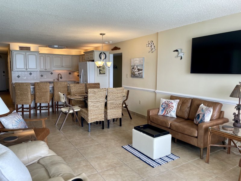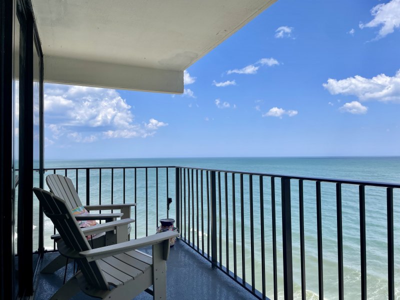 Unobstructed view of the Atlantic Ocean on the beach side (sun rises) and a great view on the street side of the famous Murrells Inlet March (sun sets). We are located high enough to hear a bit of beach visitors but never too loud and the sound of the ocean is constant. A slider in the living room lets you see the ocean all day! Some days you will see fishing boats, dolphin pods and maybe an Orca!! Please, we do ask that you not feed the birds from the balcony.