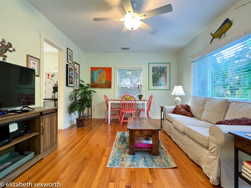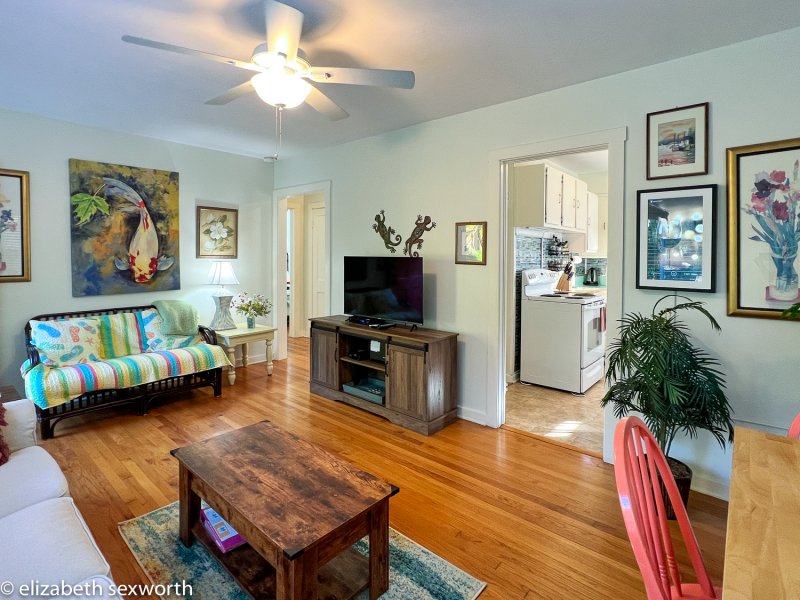 Tyn and Marty’s location is a big draw. Walk to shops, restaurants, dolphin-watching cruises, the library, golf, tennis courts, the fishing pier, and more. Walk just 5 minutes to the nearest beach. And watch the 4th of July fireworks from your front yard without stressing about parking. In fact, you never have to stress about parking here: 2 off-street parking spots are included.