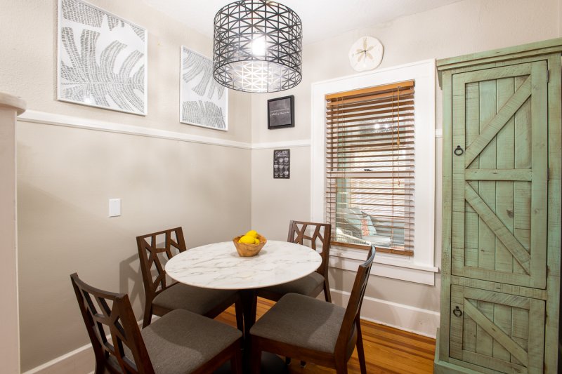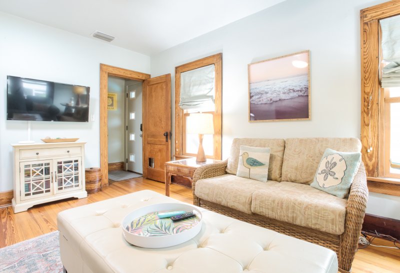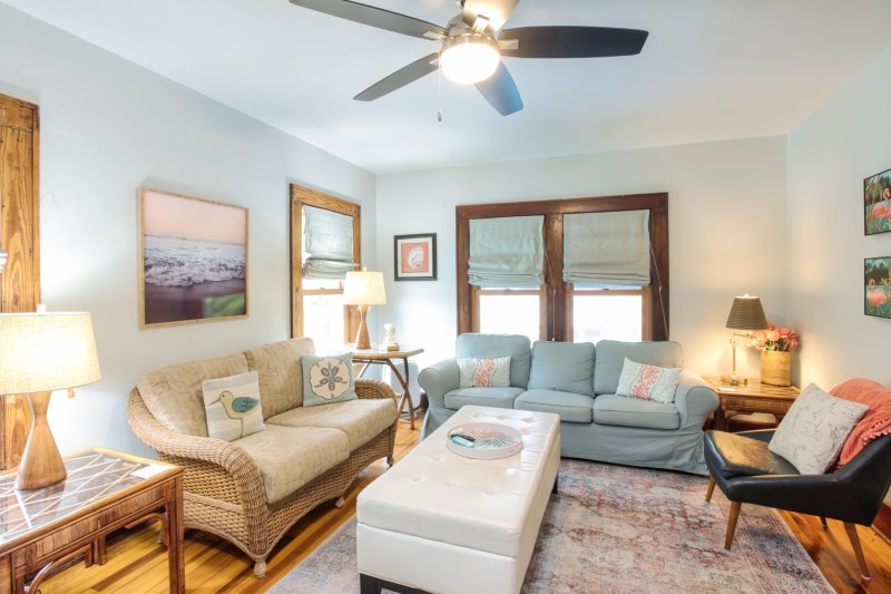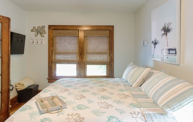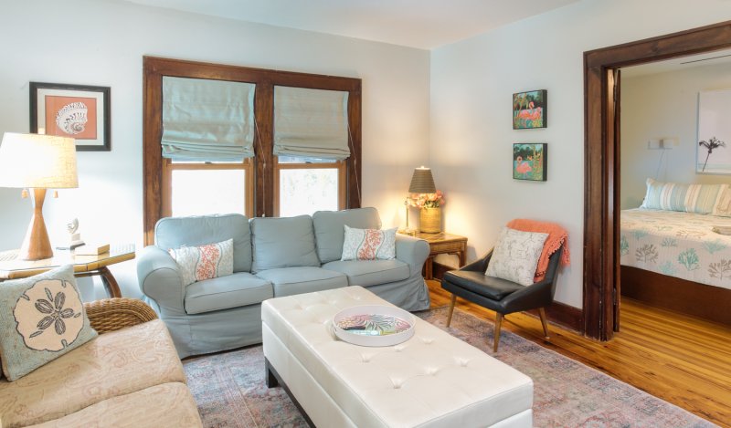 With a parlor-style living space and private, tropical patio, there’s no shortage of spaces to relax. And you’ll do so in style: preserved Shaker touches and cool coastal décor offer the ideal blend of laid-back beach vibes and old-school Florida elegance.