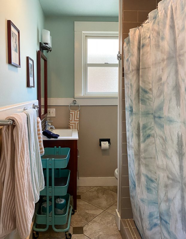 Additional guests can use the main en-suite bathroom and convenient half-bath off the downstairs laundry room. A queen-size EZ bed is also available if you’re bringing a crew of four.